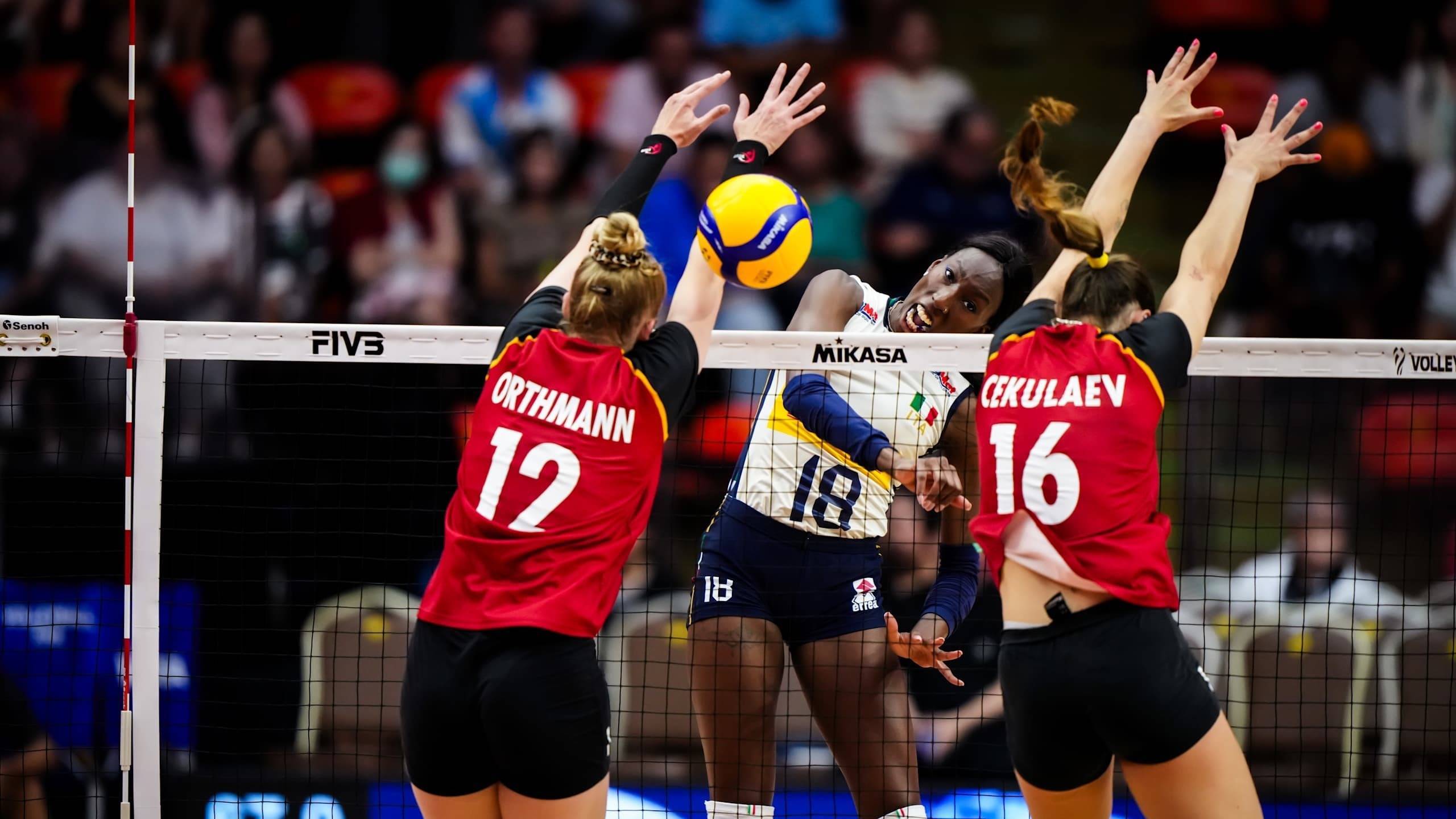 两队在比赛中。图片来自海外排联官网以B组第孑然份晋级淘汰赛的意大利队以25:22、25:18和25:11打败G组第二名德国队,将其在海外比赛中的连胜场次络续到了33场。埃格努拿下全场最高的21分,内尔维尼和法尔分袂添上11分和10分。
